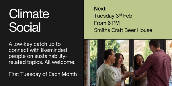 This is a regular, low-key catch up to connect with likeminded people on sustainability-related topics. Drop in if you have an interest in climate action, conservation, decarbonisation, energy, waste, food systems, etc, or are simply curious and keen to connect.It's free to attend and happens on the first Tuesday of each month. Let’s connect and strengthen our local sustainability community.